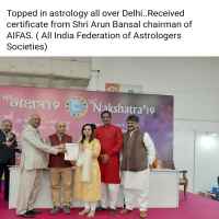 Rachika R Sharma is an Astrologer, Numerologist, Palm reader, lal kitab, Vastu shastra expert. She has successfully completed courses like Jyotish Praveen, Jyotish Ratan, Jyotish Bhushan, Jyotish Visharad, Lal Kitab, Numerology, Vastu, Palm reading from ICAS (Indian Council of Astrological Sciences) and AIFAS (All India Federation of Astrologers Socities) and doing research in Astrology. Also Topped in astrology all over Delhi. Recognized for a strong and excellent academic background with MBA, MCA and M. Com with excellent interpersonal and communication skills with demonstrated abilities in customer relationship management. Prepare horoscope by computing position of planets, their relationship to each other and to zodiac signs, based on factors, like time place person was born. And detailed analysis of horoscope to advise clients regarding future trends events. Ability to listen to and understand information and ideas presented through spoken words and sentences. Identify complex problems and review related information to develop and evaluate options and implement solutions. Consider the relative costs and benefits of potential actions to choose the most appropriate one.